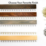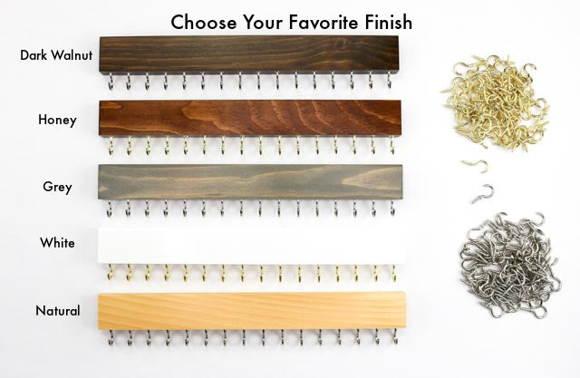 Every organizer is unique to you– from the wood grain and knots to you choosing your favorite stain, ideal length (16" long is most popular), and preferred metal finish.